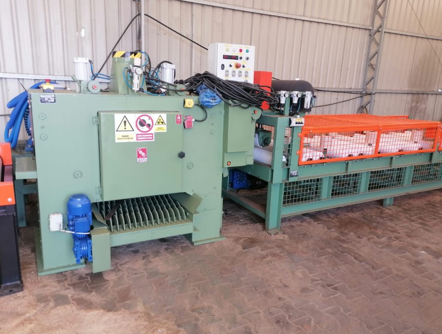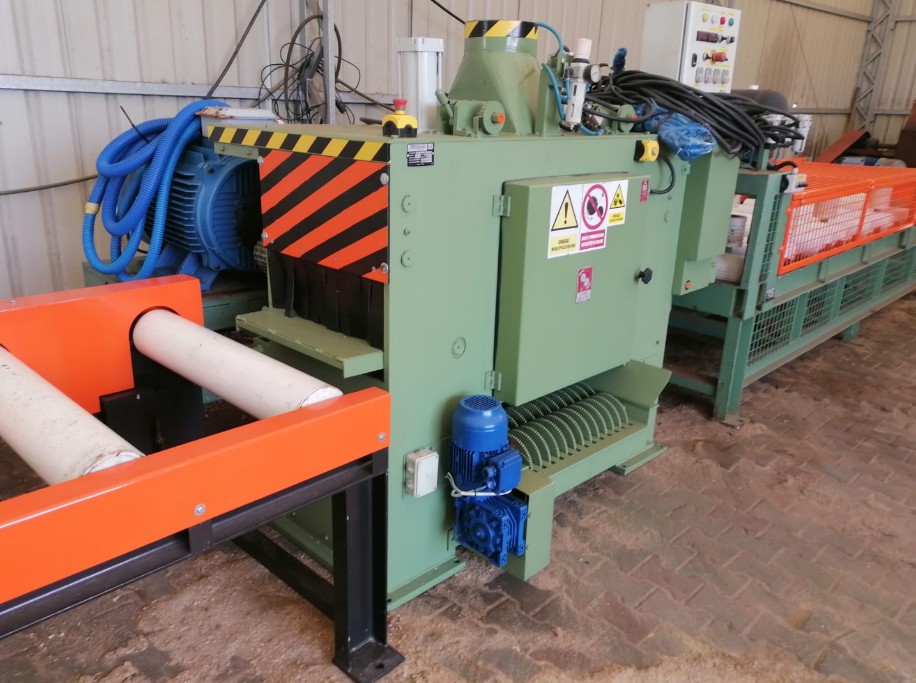 -1 пара приводных, управляемых пневматических вертикальных роликов, установленных для облегчения удаления пильных полотен - мотор-редукторы 2 x 0, 55 кВт